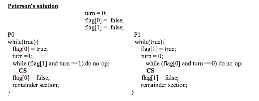 - Limited to two processes: Peterson's solution can only be used for systems with two processes. It cannot be extended to support more than two processes.